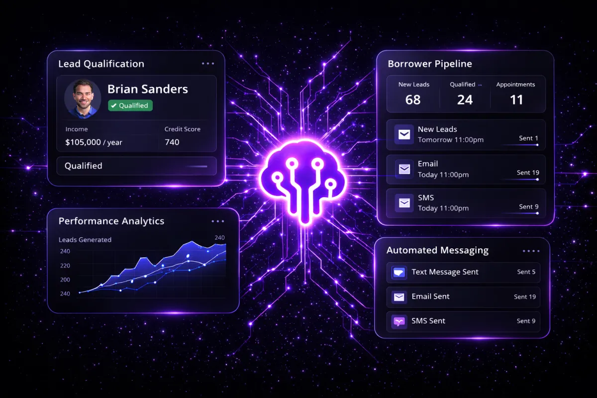 QualifAI gives mortgage teams the infrastructure to scale intelligently. Beyond automation, our platform helps you strengthen your brand, standardize performance, and build systems that support long-term growth—without adding complexity or headcount.
