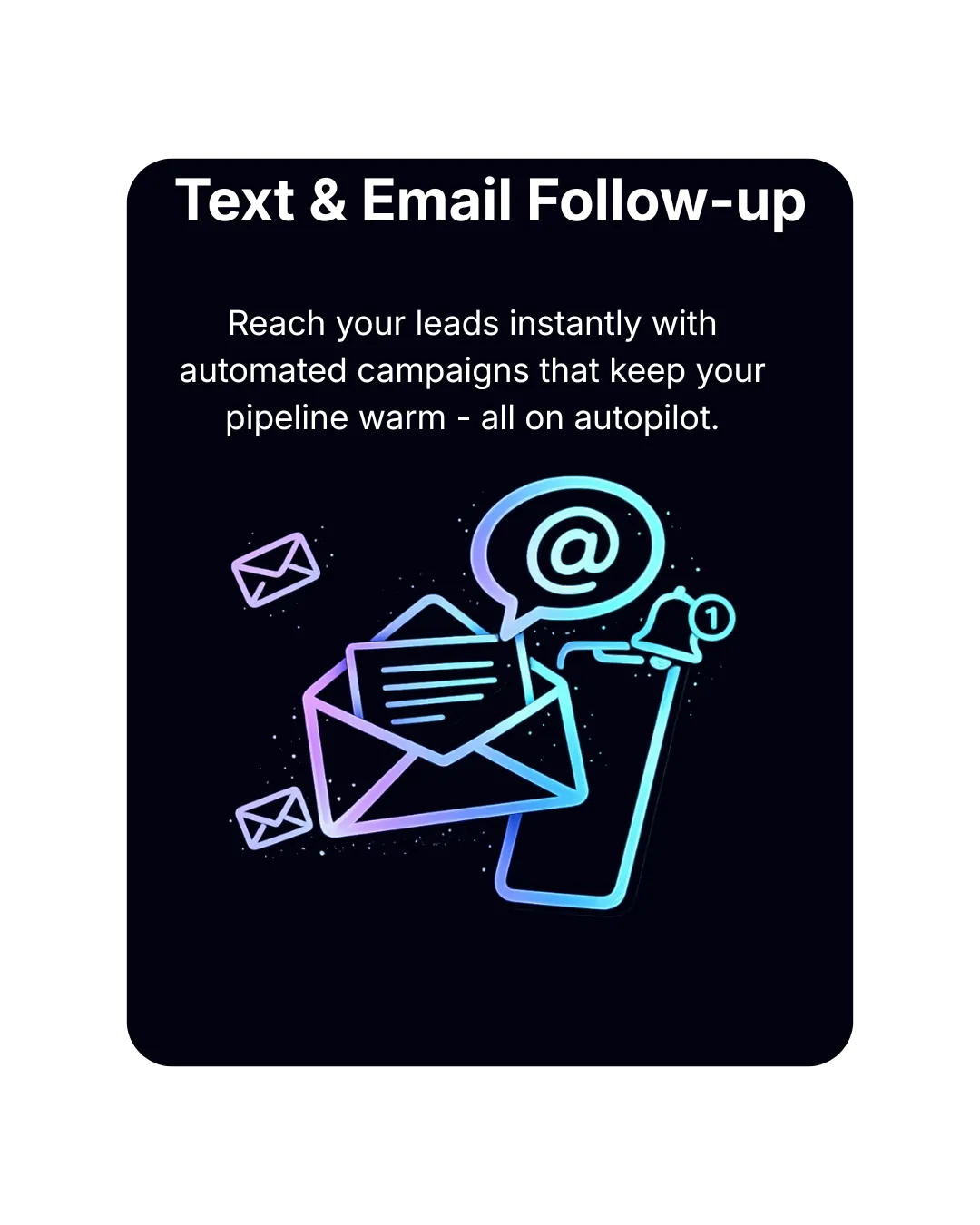Automated text and email follow-up that engages prospects 24/7—without manual outreach.