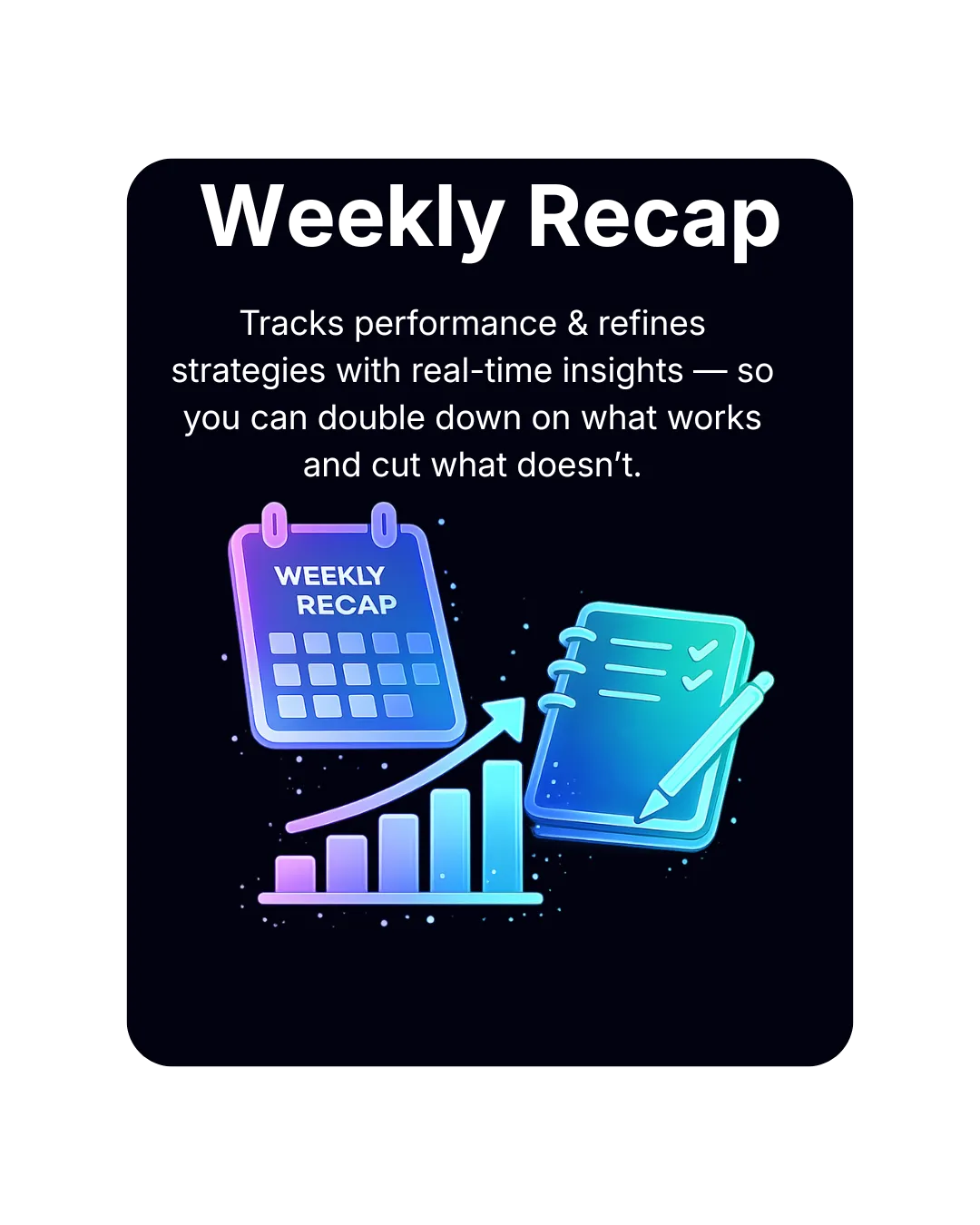 Tracks performance & refines strategies with real-time insights — so you can double down on what works and cut what doesn’t.